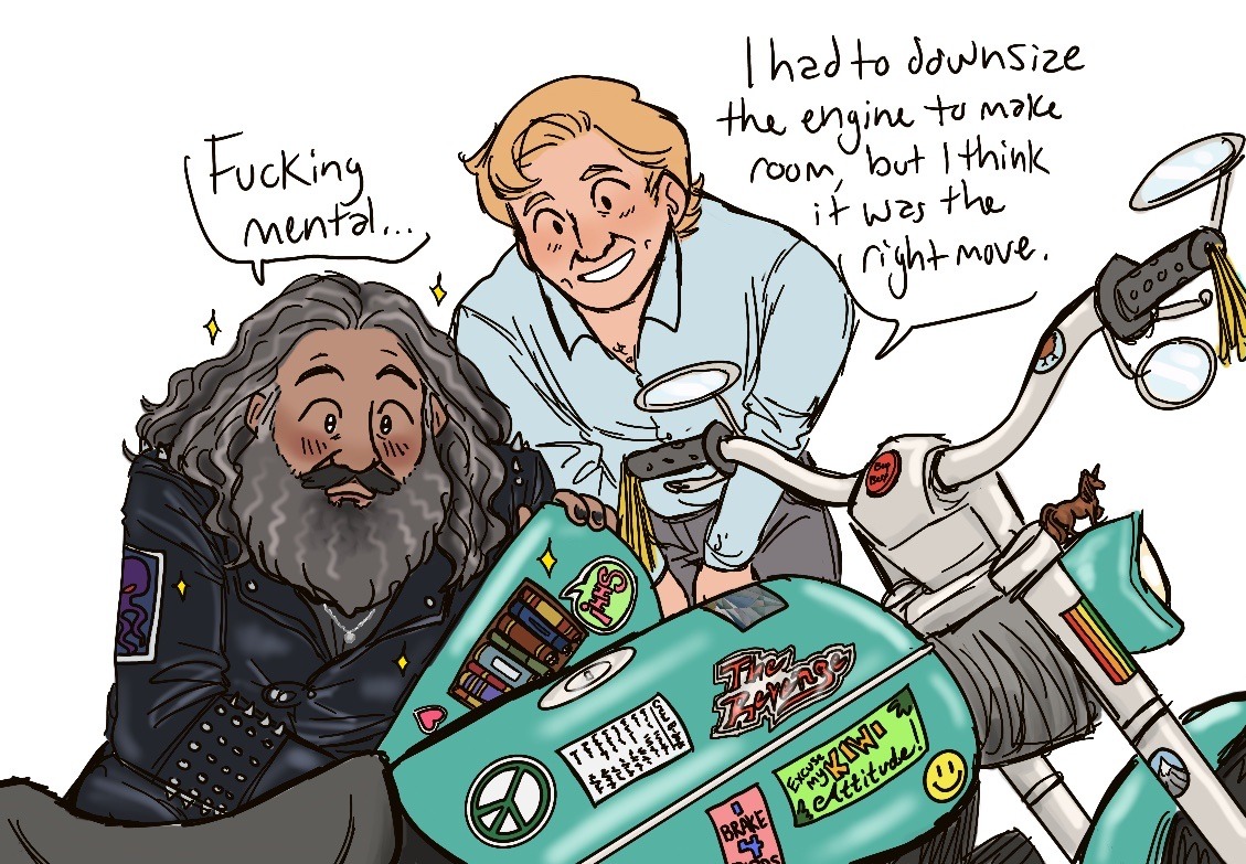 anyway the superior #ofmd modern au is a closeted gay man abandoning his family to start a bikie gang #OFMDfanart #bikieau