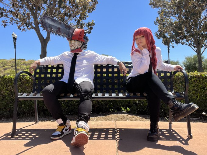 ⏳We’ll be right back…⏳ Posting this here too, we had a photoshoot in the park together❤️ IG: @muffyscos #csm #chainsawman #chainsawmancosplay #denji #makima #makimacosplay #denjicosplay #anime #manga #cosplay #cosplayergirl