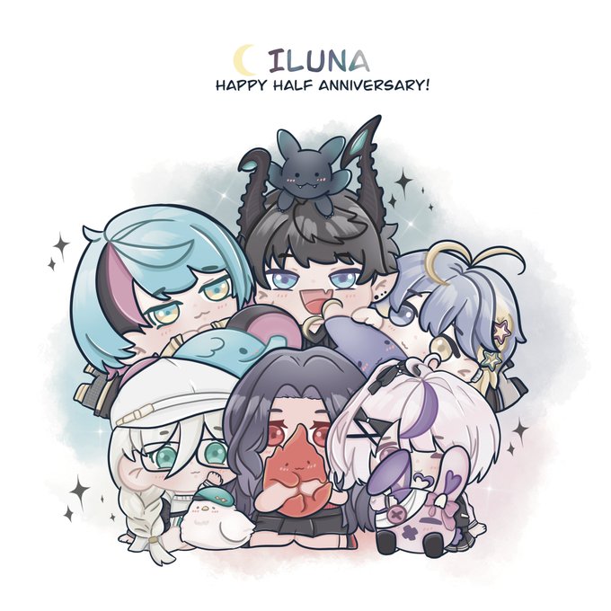 ✨🌙ILUNA Happy Half Anniversary ! ❤️🩹💙🤍💜❤️💚 #ScarleArt #AmareAtelier #MariArt #DrawKyo #RenZottoArt #Arcadiart