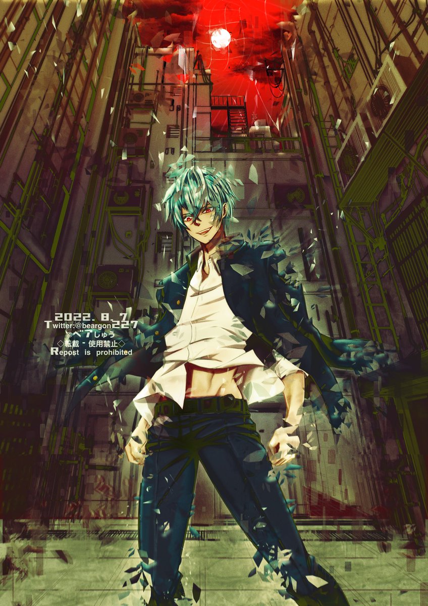 #自作キャラで最強は誰ですか 右のレキくん この2人は同一人物から分かれた人格で1年に1度身体の所有権をかけて闘うのだがレキド(左)のルールで戦うので一度も勝てないレキくん 普段封じ込められているのでレキドが寝ている時に時々しか出て来られない