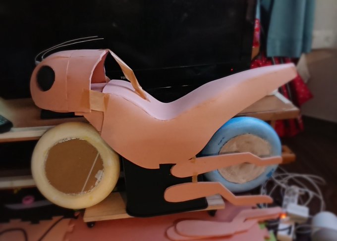 バトルホッパー製作 100均系で頑張ってましたが塗料は難しかったです。。。 今回は水性ペンキ赤、黒 とヌーロという水性塗料のうすわかくさ色を使用しました。 あとは白とオレンジを塗って完成! #仮面ライダーブラック #バトルホッパー #手作り #キングストーンフラッシュ #コスプレ