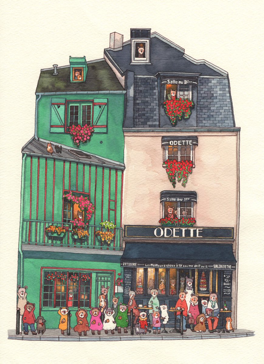 花🌼描いたよ #水彩画 #cat #くま #bear #ドイツ イラスト #イラストレーション #illustration art #artwork #水彩 #芸術 #美術 #watercolor