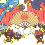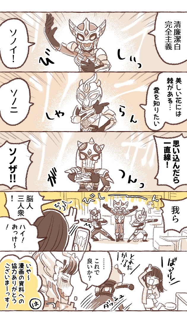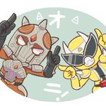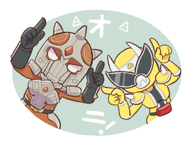 漫画コンビ変身体、2人ともツノついてるの可愛いねの絵 (FLT告知動画のダブルオニ本当にありがとう)