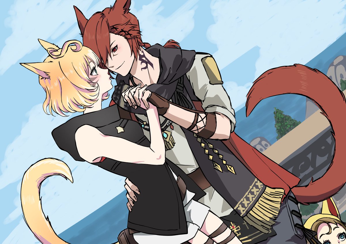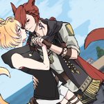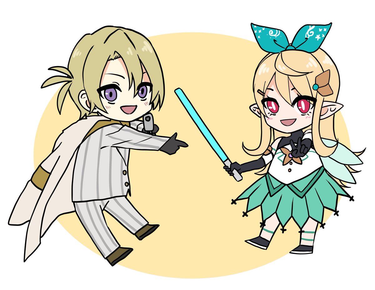 I finally finished drawing it!! And 2 versions cuz I didn’t wanna make the canvas wider and I couldn’t figure out who to put in front ;-; anyhow, sonny and enna from the ipstar cafe collab! #Briskart #Palouette