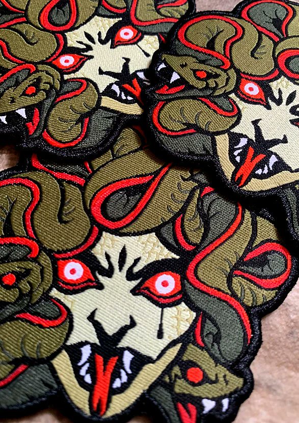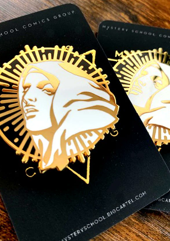 While no one was watching I snuck around and opened up mysteryschool.bigcartel.com back up, with new October offerings! Two patches and two pins, inspired by some of my favorite works of art. Feels so good to have our inventory organized again after moving! ⚔️🔥🖤 @ComicsMystery
