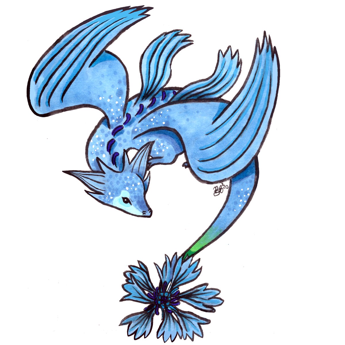 Drawgust 4 - Cornflower Dragon #drawgust #drawgust2020 #Smaugust #smaugust2020 #flowers #creaturedesign