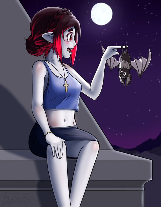 A drawing of Eleanor, an incredibly cute OC made by @YoAdrianDK It would appear she has made a new friend! 🦇 I hope you all like it! I had a lot of fun drawing it and experimenting with new coloring techniques! ^U^ #vampire #ArtistOnTwitter