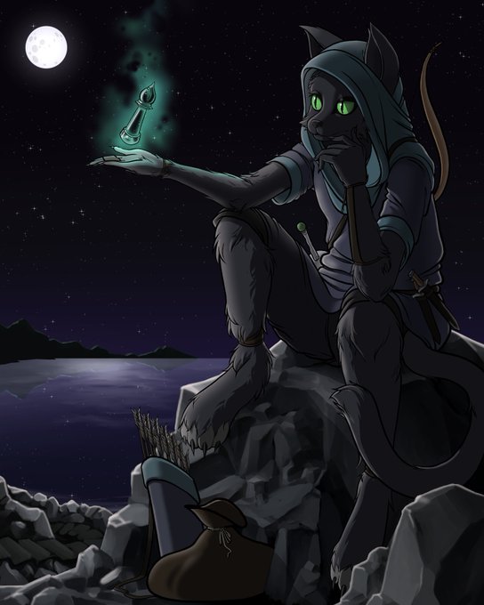 Meet Ether! He is my Tabaxi Rogue I designed for DnD! The glass chess pieces he carries contain fragments of departing souls...I wonder what sort of secrets they tell him. #dndart #DnDcharacter #characterdesign #originalcharacterart