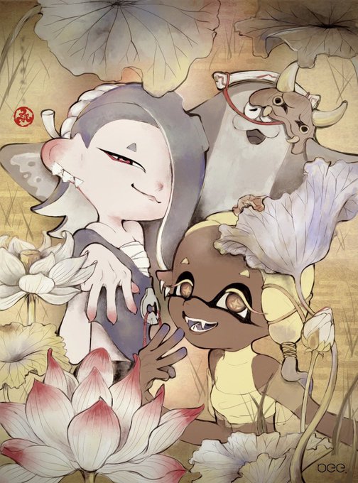 #イラストを4枚貼ると秋風に乗って絵柄を好いてくれる人の元へ届くらしい スプラトゥーンのファンアートをのんびりしたペースで描かせてもらっています
