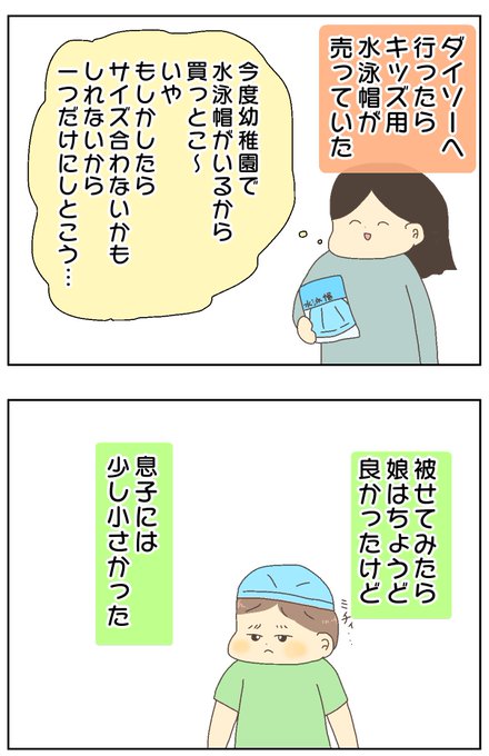 まさか水泳帽気に入るとは思わないじゃない? #絵日記 #育児漫画
