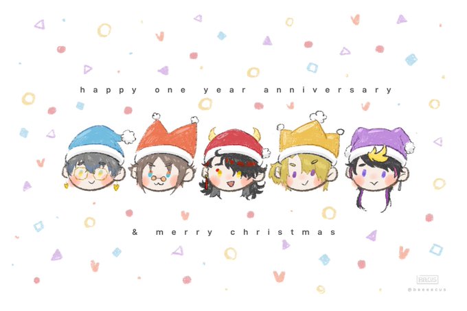 Happy one year to the boys & merry christmas ❤️🧡💛💙💜 #Luxiem #Akurylic #drawluca #YaminoArt #MystArt #ikenography
