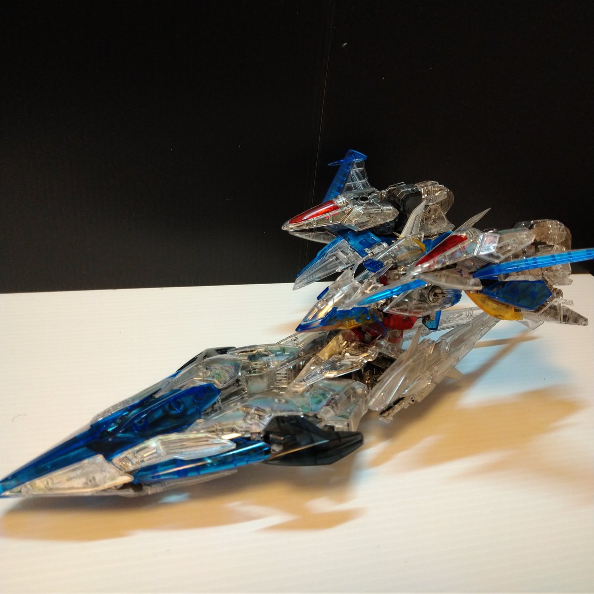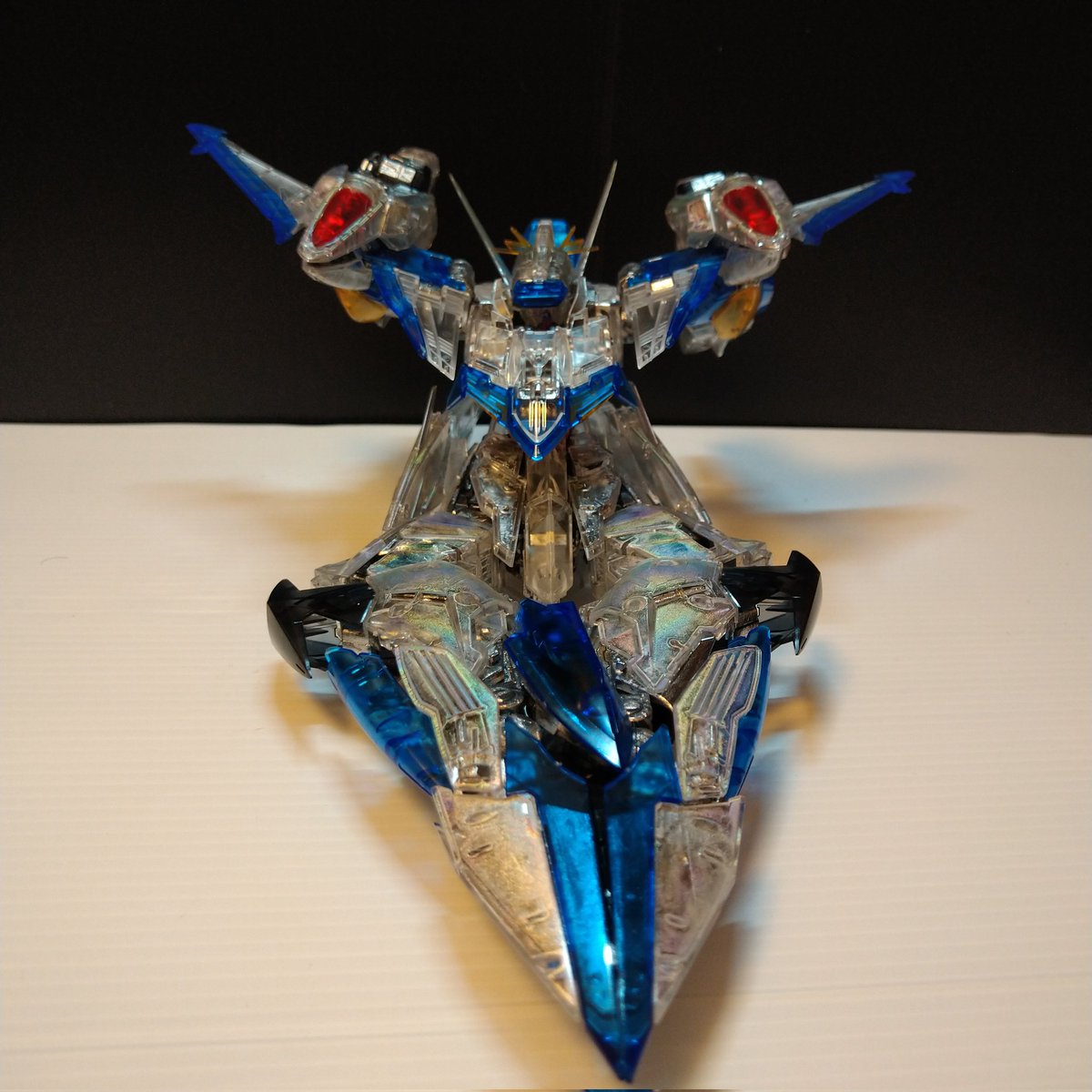 MG 1/100 エクリプスガンダム(クリアカラー) カッコいいけど…変形ムズすぎ。破損しそうで無理できず歪んでます😭 MS形態で飾っとこ。 #ガンプラ好きな人たちと繋がりたい #ガンプラの画像貼るとRTされると聞いて