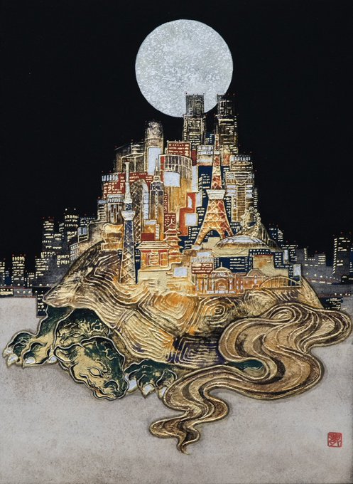 和紙に岩絵具、金泥、金箔を使い日本画の技法で絵を描いています🖌 質感に拘りがありますが、写真だと全く伝わらないので是非現物を観て欲しいです。 主に百貨店や画廊で展示させて貰ってますのでよろしくお願いします。 ryukitazawa.com #自己紹介