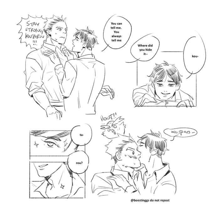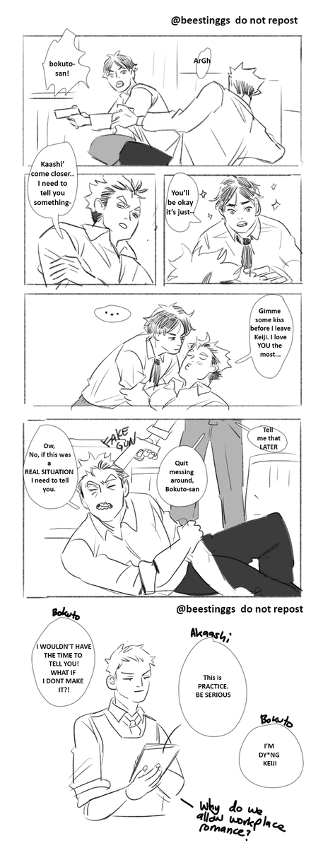Bkak detective AU shenanigans. He also practices his "last words" to akaashi during a fake situation. twitter.com/beestinggs/sta…