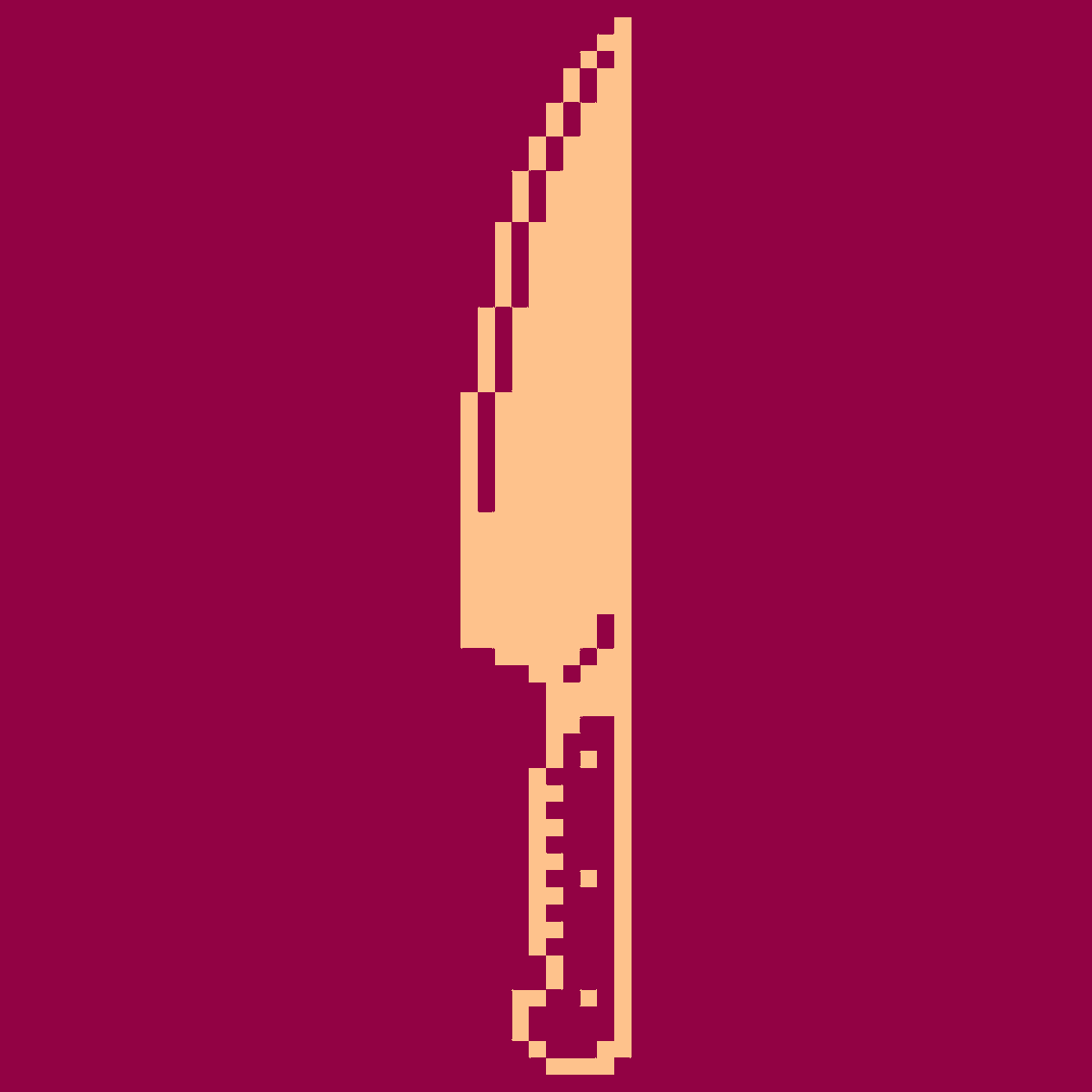 Kitchen Knife 256px (nope, it's not the same image as the previous one 🙃) — palette: #ysfunkyjam by @yelta8 — #pixelart #ドット絵 #aseprite #kitchenknife #cutlery