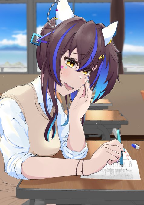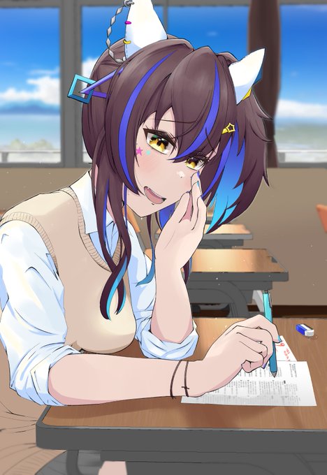 (......ねェ、キミも補習?ココ教えてくんね?)ボソッ #ウマ娘 #ダイタクヘリオス