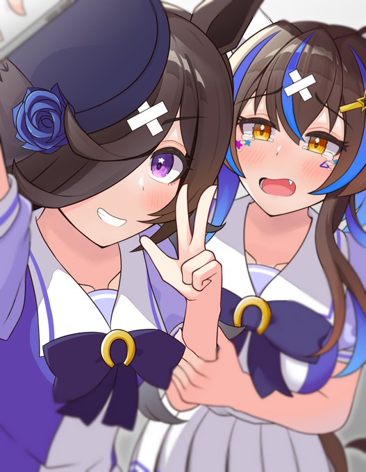 「ウチら入れ替わってるってマ!?とりま撮るしかなくね!?ウェーイ☆」 「ふえぇ......ライスの身体でそんなことしないで......。」 #ウマ娘