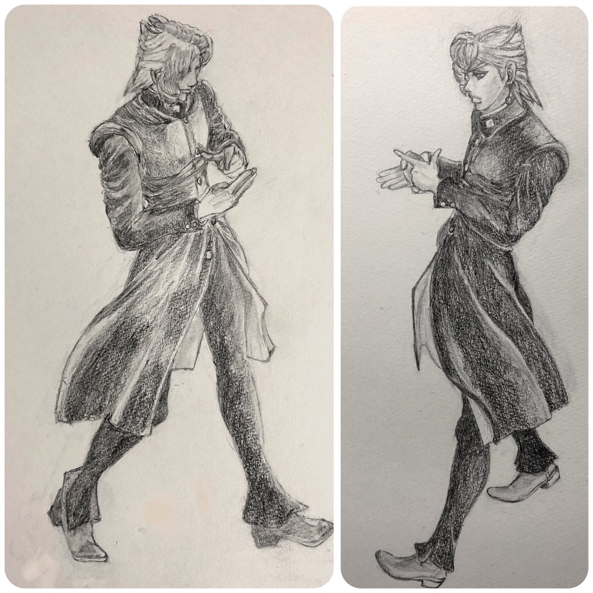 #みんなの黒カラー制服院が見たい これも過去絵であったので図々しく載せてしまいました。 フィギュアを見ながら描いた絵です。 確かフォロワーさんに「歩きスマホ院」と命名していただきましたね😆✨ #jjba