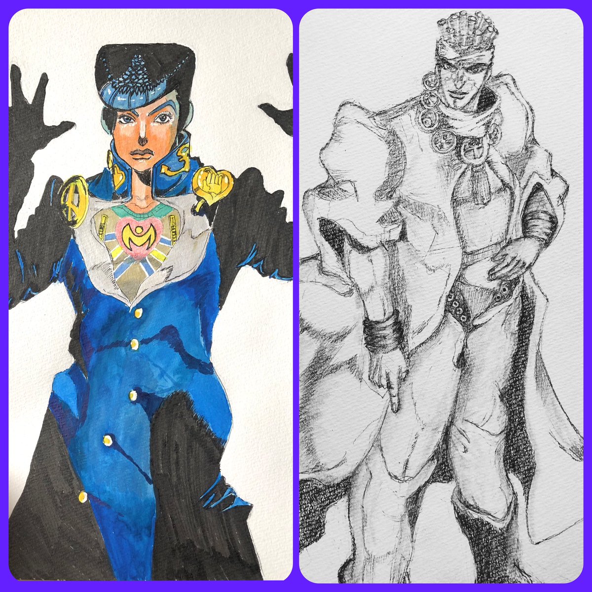 #今月描いた絵を晒そう 今月も4枚だけだったぞ… 😭 中旬から全く筆が進まなかったな… 終盤にアニメを見たらまた描きたくなった 今回影を取り入れて撮影し直しました! 誰もいないかもしれないけど一枚ずつ見たい場合はリプ欄へ↓ みんないつもありがとう🥰 来月もよろしくお願いします #jjba