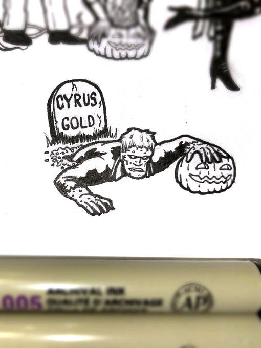 #Inktober Day 9: Died on Saturday, buried on Sunday… but ye can’t keep a good zombie down. a tiny #SolomonGrundy digs his way up to join the Pumpkin Patch Pals!