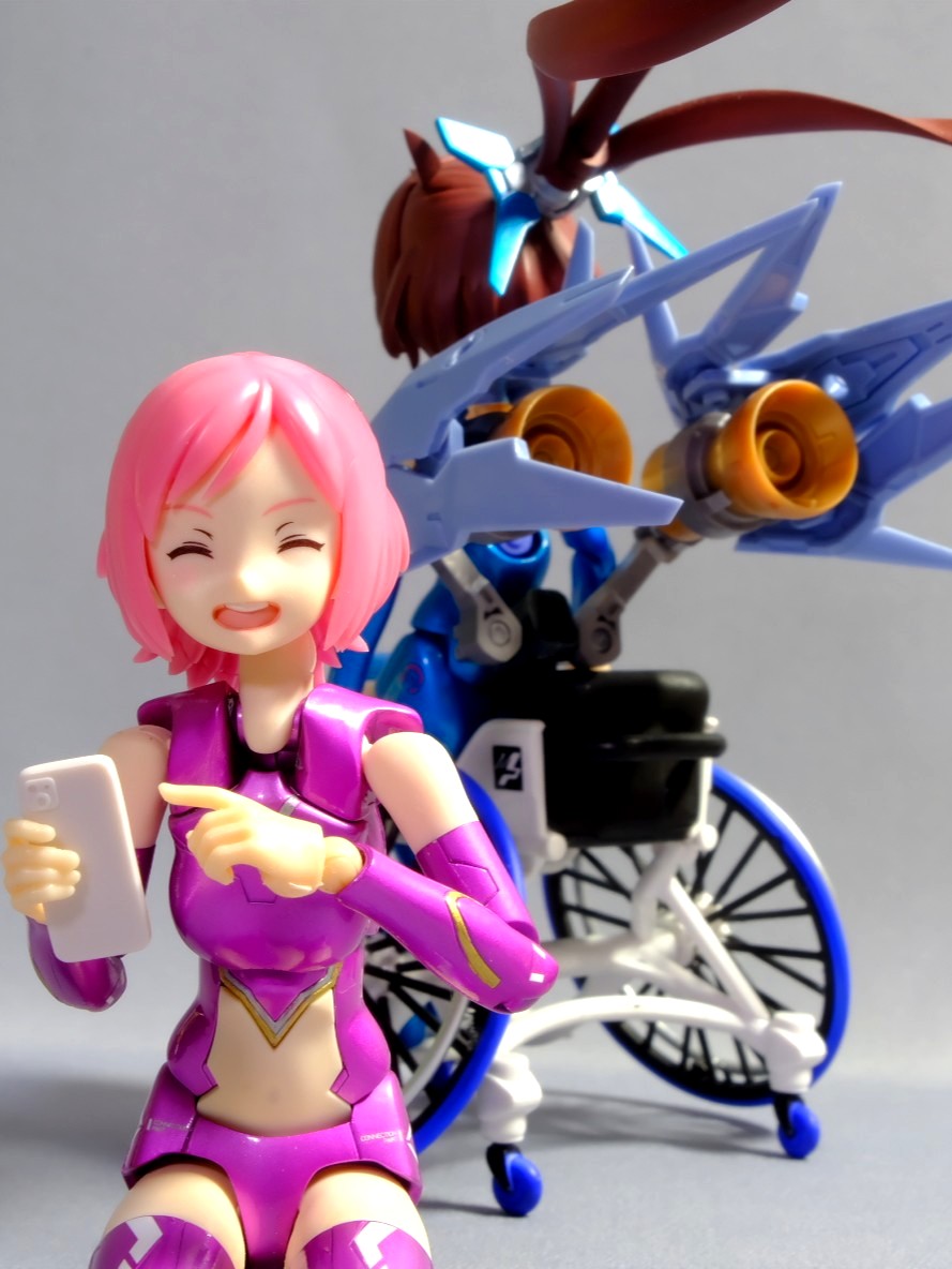 競技用の車椅子。 最近の500円ガチャはクオリティ高い。 ええ、本日もラプターさんは元気です。 #メガミデバイス