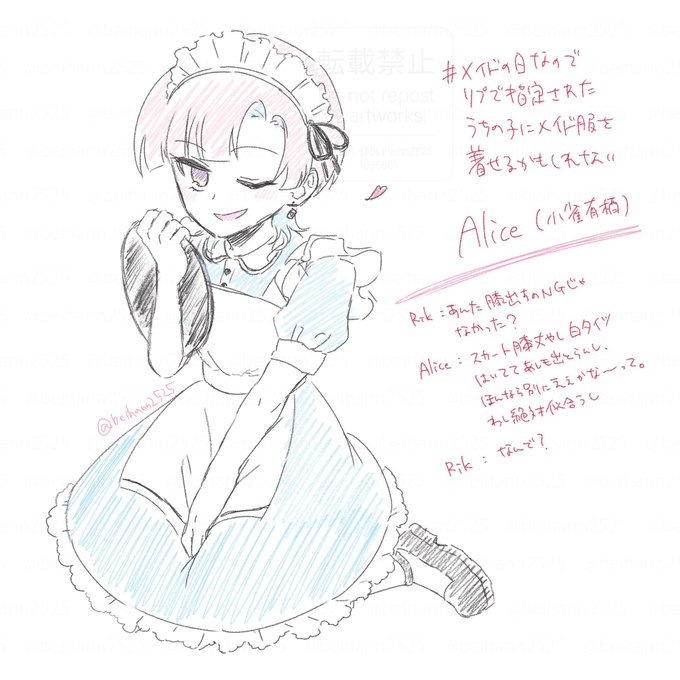 アリスメイドありす! リプありがとうございました! #08キャラ #アイドリbts / Alice(小雀有栖) #メイドの日 #イラスト #創作 #オリジナル #オリキャラ #アイドル #女装 #メイド服