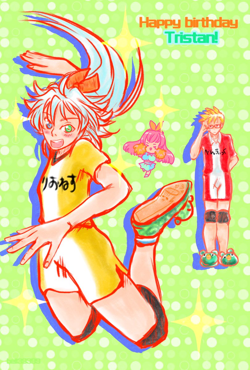🦊「誕生日何欲しいか聞いたら謎の遊びに付き合わされた。…楽しいならいいけど…」 誕生日あんまり関係ないけど中の人パロ。資料ガン見して描きました。 スニーカーは面d…より快適なランスのおじさんお手製スリッパです。 #トリスタン生誕祭2023 ♯トリスタン誕生祭2023