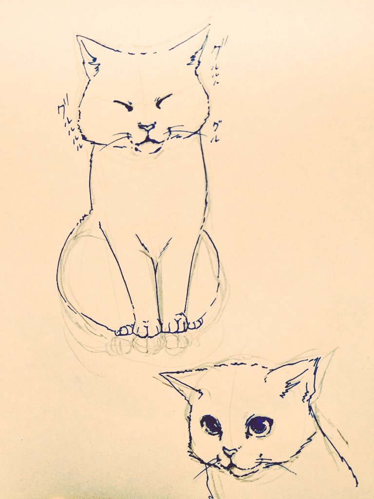 にゃんこの塗り絵 息子に取られてちゃんと塗り絵できないから、せめてイラストを参考に絵を描いてる #イラスト #大人の塗り絵 #イラスト練習 #にゃんこ #絵描きさんと繋がりたい #絵柄が好みって人にフォローされたい