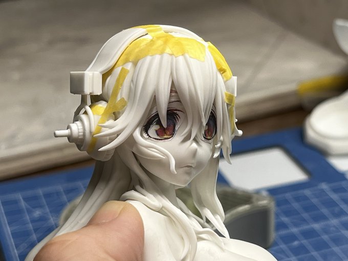 そに子ちゃんデカール完成 ヘッドフォンも🎧良くなったし 残りはインストと展示台や販売準備 まだまだたくさんやることあるけど頑張るぞー #WF2023S #すーぱーそに子 #supersonico