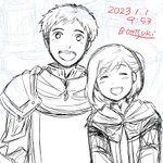 47 111 ㊗️幻水紡時11周年おめでとうございます🎉 は、早いなぁ…(しみじみ) 【非公式絵】 今年はあまり描いたことがなかった気がする 癒し担当の二人組でお祝いを… 二人とも白衣がモチーフでしたので、似た系統で色違いな感じになっています☺️ 23/02/09 18:10