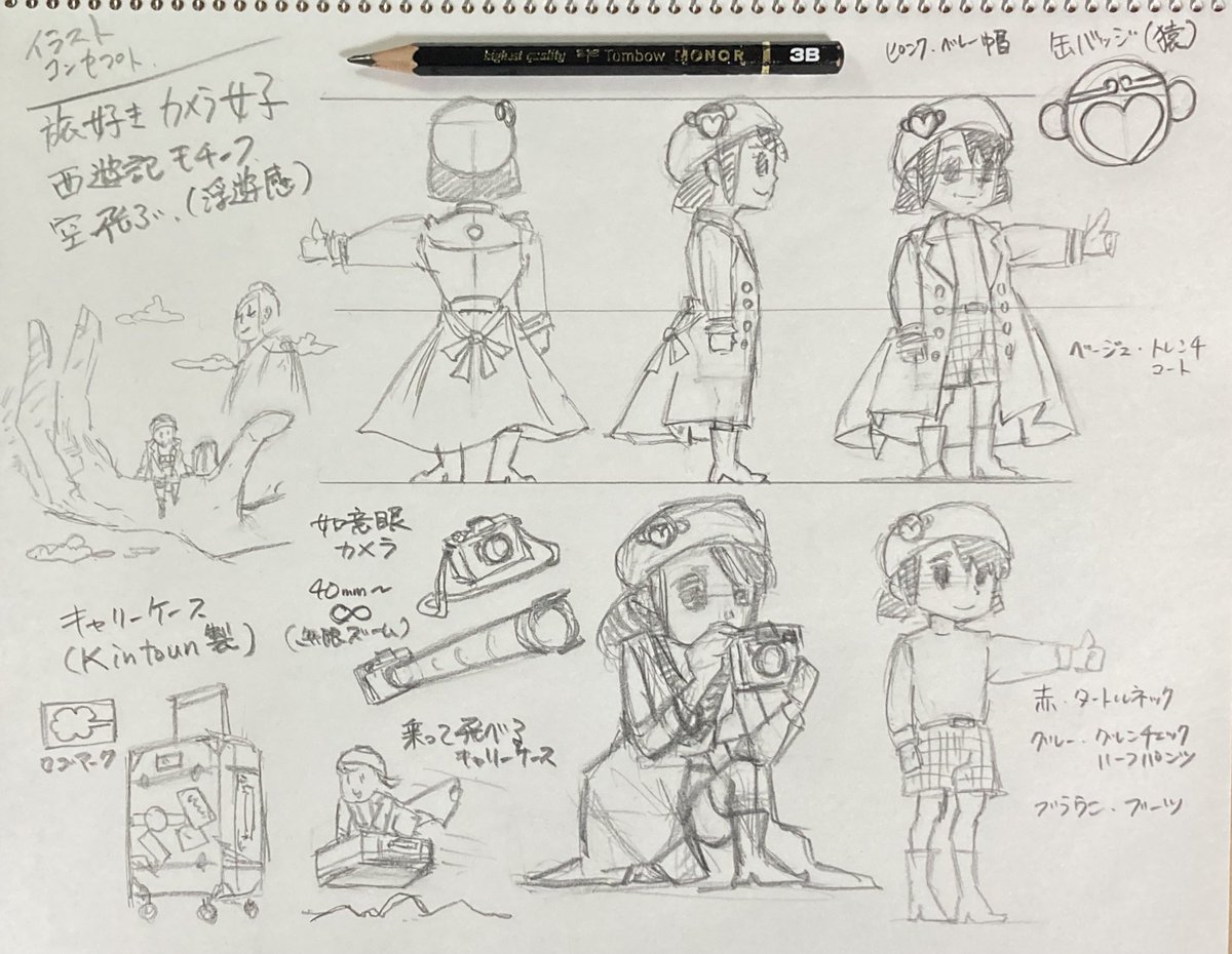 練習メモ #284-2 (2022/3/17) 主人公の設定が固まってきた! ・旅好きカメラ女子が ・西遊記モチーフの不思議グッズで ・壮麗な景色の中を ・飛び回る 物語考えるの楽しい☺️ #オリジナル #設定画 #落書き #絵描きさんと繋がりたい #イラスト好きさんと繋がりたい