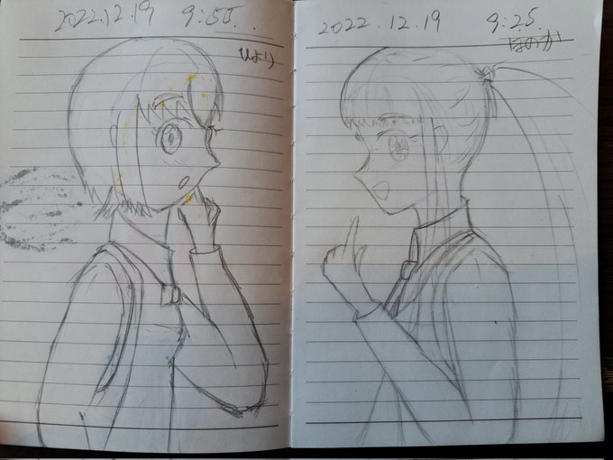 @mii46865627 みい様の交流会、 今回のコンセプトに 丁度いいのがあったので参加します 1,2枚目、これが私のオリキャラ ほのか👧ひより👩の前身です そして3枚目に繋がります (1,2枚目はどこかでリファインします!) #絵描きさんと繋がりたい #一次創作 #オリジナルイラスト #絵描きさんフォロバ100