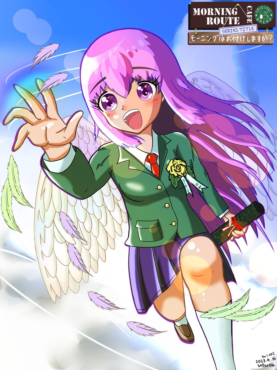 おはようございます 完成しました! 【大天使女子高生ほのか👧】 ver1.00c🍃 「お姉ちゃんと天界廻るの楽しいね!」 夕陽見上げてホッと一息どうぞ☕ ひよりとセットを後に掲載予定 #絵が伸びないから頼むそーた #GW創作クラスタフォロー祭 #イラスト好きな人と繋がりたい #絵描きさんと繋がりたい