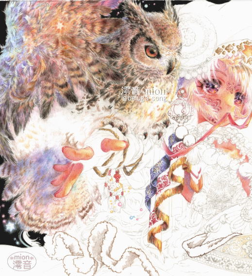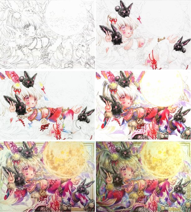 創作 うさぎうさぎなにみてる #色鉛筆イラスト #アナログイラスト KMKケント紙 約A4(21×29cm) 油性色鉛筆(ポリクロモスとプリズマカラー) #イラスト #illustration #月 #ウサギ #絵描きさんと繋がりたい
