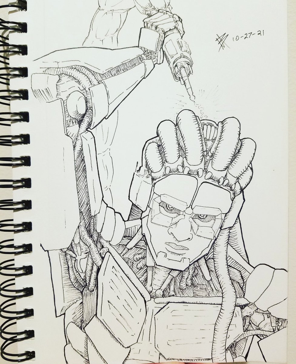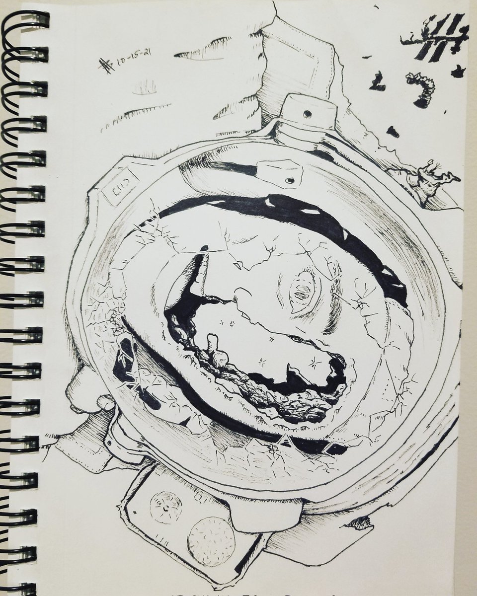 They try to prepare for any situation. The helmet is engineered to a T! Still, can't do much about a piece of rock going 20 km/s. The odds of getting hit are astronomically tiny, but all it takes is one bad day... #Inktober 15: Helmet #inktober2021 #drawing #art #space #astronaut