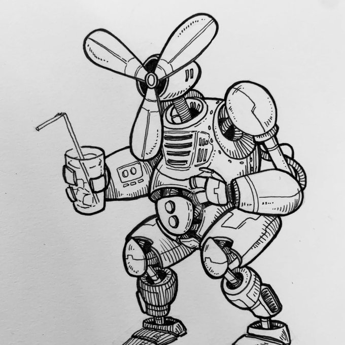 Inktober jour 7. Fan / Ventilateur . #Inktober #inktober2021 #sketch #dessin #drawing #illustration #fan #ventilateur #robot #droid #artwork #art