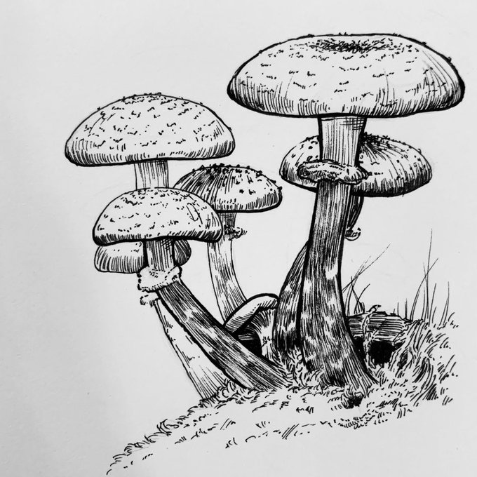 Inktober jour 20. Sprout / Pousser . #Inktober #inktober2021 #sketch #dessin #illustration #sprout #mushrooms #nature #forest #wood #artwork #art