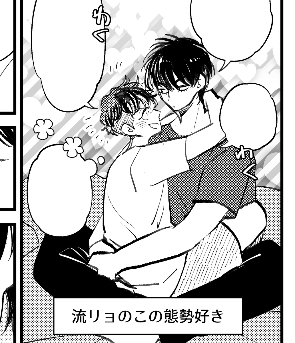 やもりさん(@yamo_33R)に許可いただいて最高流リョ作品を自分の絵柄で写経させていただきました。この流くんが好きすぎて…年下の男の子が可愛すぎてよ~…ッ!