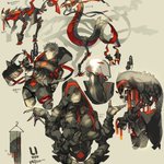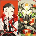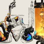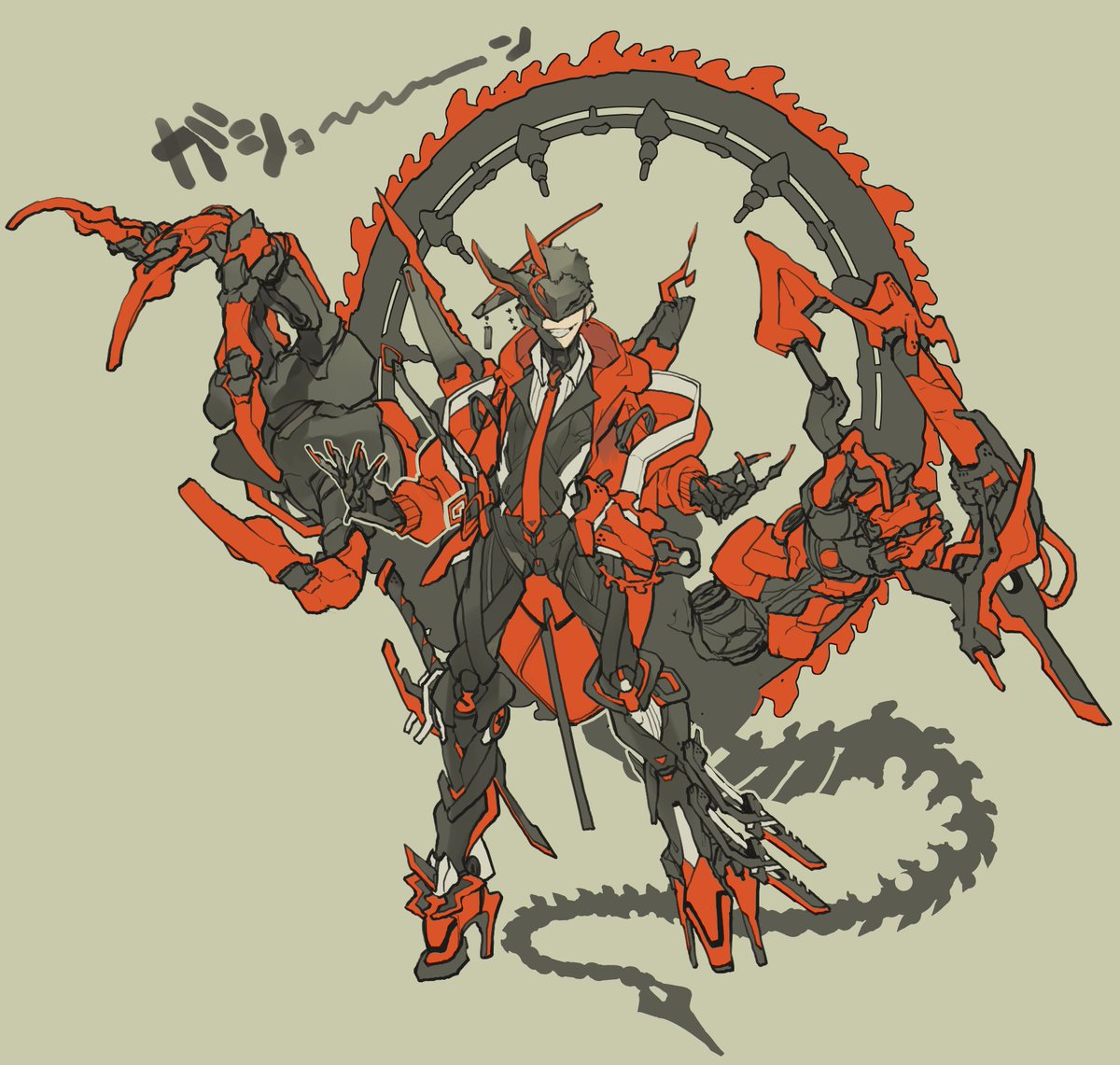 #GWはフォロワーさんが増えるらしい #ゴールデンウィークSNS展覧会2022 人っぽい形の人外異形筋肉メカ 色々描いてる。最近は髪が短いのばかり描いてるね Blender(3D)で背景作ることもあるよ