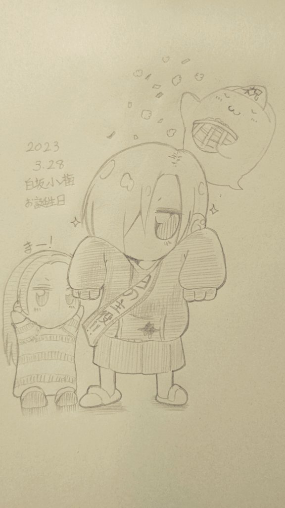 67 134 小梅、誕生日おめでとう(ง˘ω˘)ง (パソコンの様子がおかしいので鉛筆書きにて) #白坂小梅誕生祭2023 23/03/28 00:43