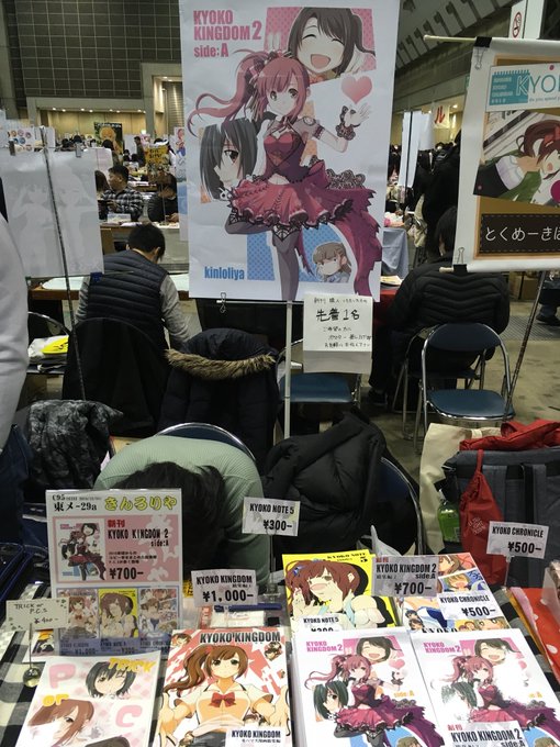 3 3 設営完了しました! 11月新刊の本をお品書きに完全に入れ忘れたのは気にしないでくださいね! あと、ポスター欲しい人は新刊購入の際に伝えてもらえれば終了近くでお渡しします! 18/12/31 09:45