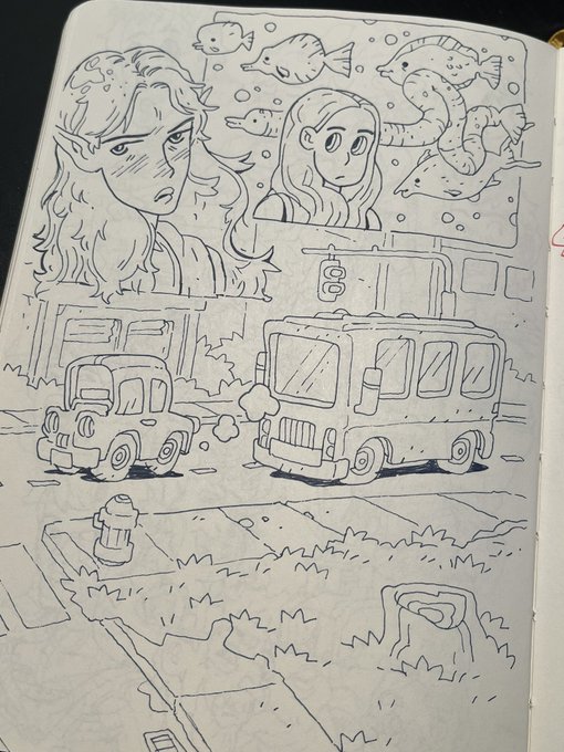 QRT with an old and a new drawing! 2019 vs 2023, both based on the Trinity Alps in California :-) twitter.com/friedbaens/sta…