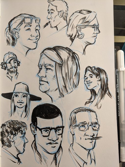 Day 26 of #inktober #trialofink : FACES. had the chance to watch the KC orchestra play outdoors. A perfect opportunity to go people watching! #inktober2020 #ink #sketchbook #portrait #faces #peoplewatching