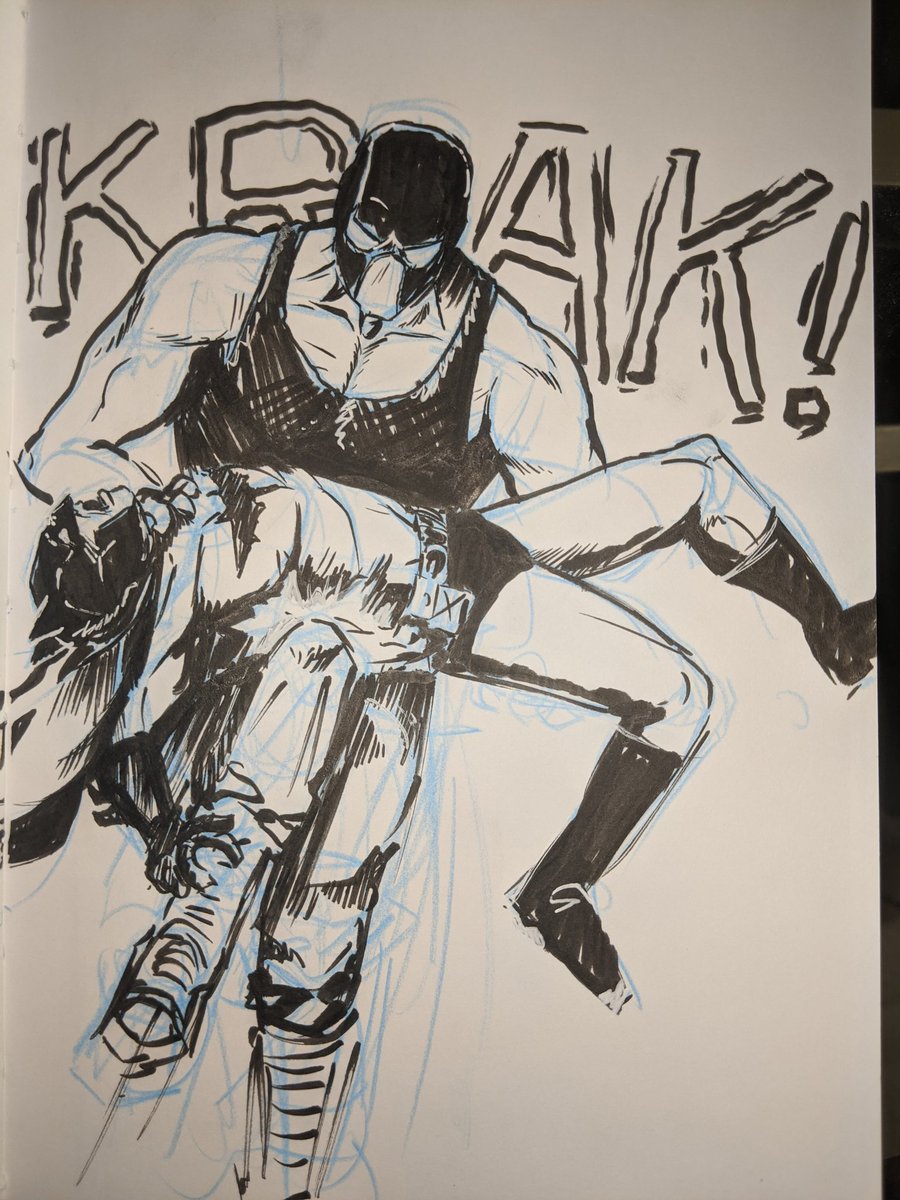 Day 27 of #inktober #trialofink : SPINE. An iconic moment. I remember find this book at half price books as a kid not knowing what I was about to get into. #inktober2020 #ink #sketchbook #comics #batman #bane #thedarkknight #thedarkknightrises #dccomics