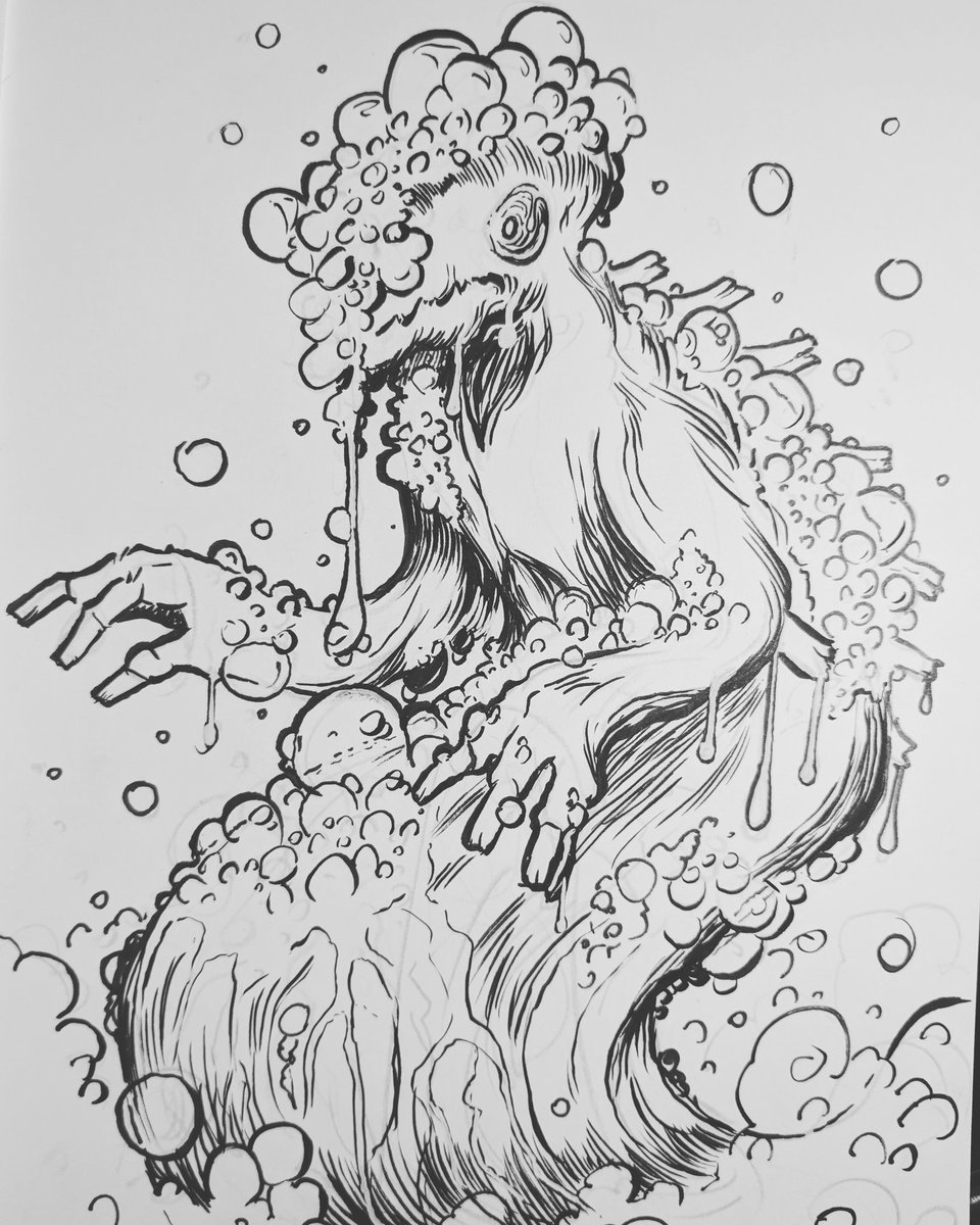 Day 30 of #inktober #trialofink : BUBBLING This is Sudsy. Sudsy is searching for a date to take to the monster mash. #inktober #ink #monster #spooktober2020 #drawtober #monsters #sketchbook #halloween