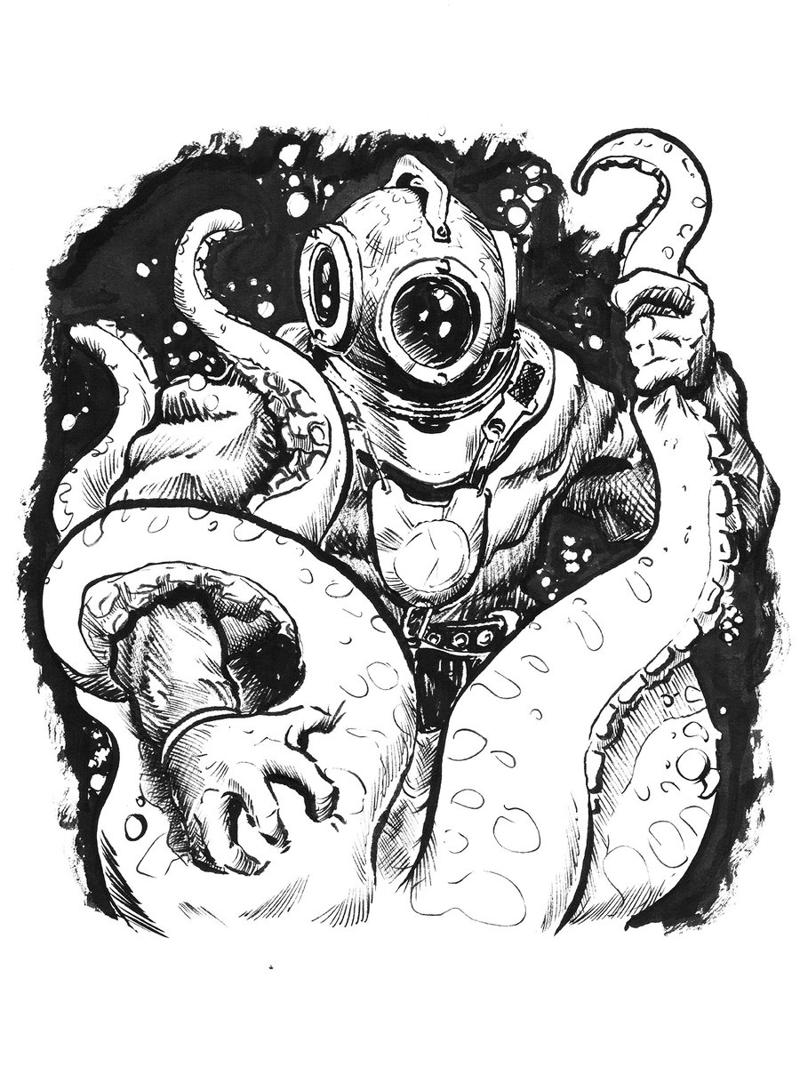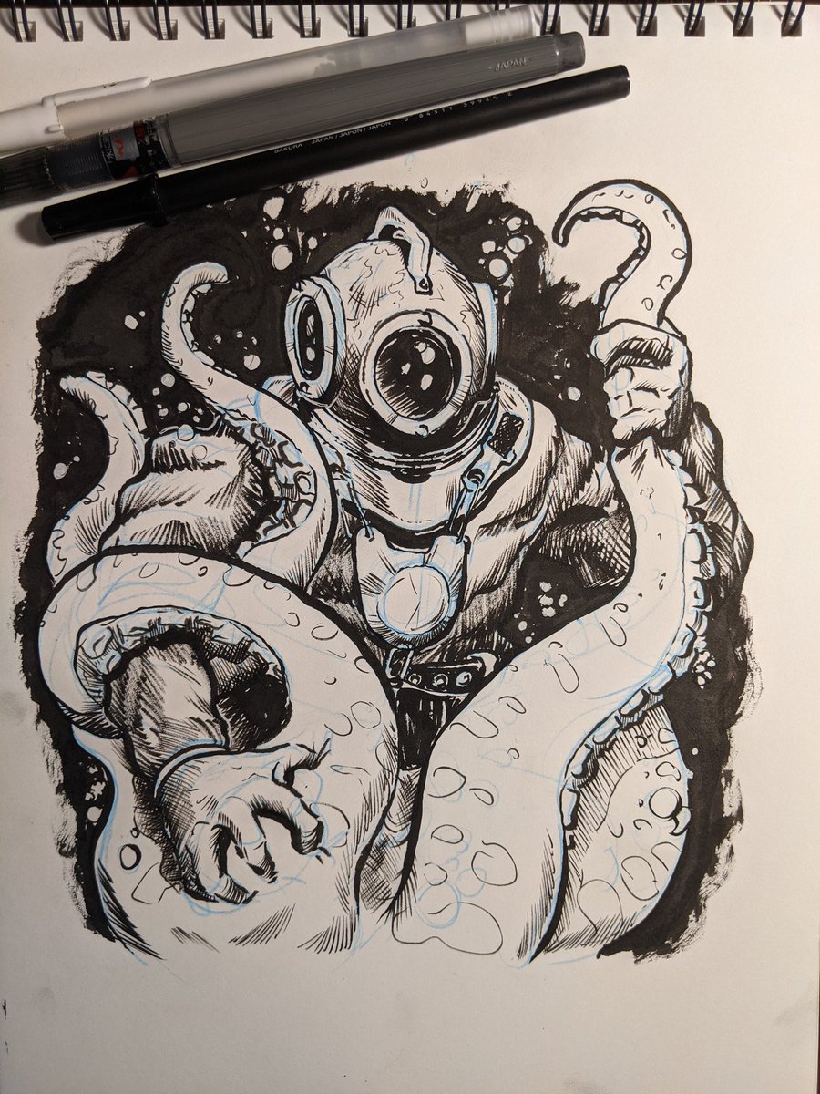 #inktober2021 day 2 #suit My second underwater piece 😐 this month, whoops. #Inktober #sketchbook