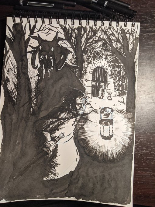 I technically did this on time. Just had to recover from Halloween party stuff. #Inktober day 31 RISK #inktober2021
