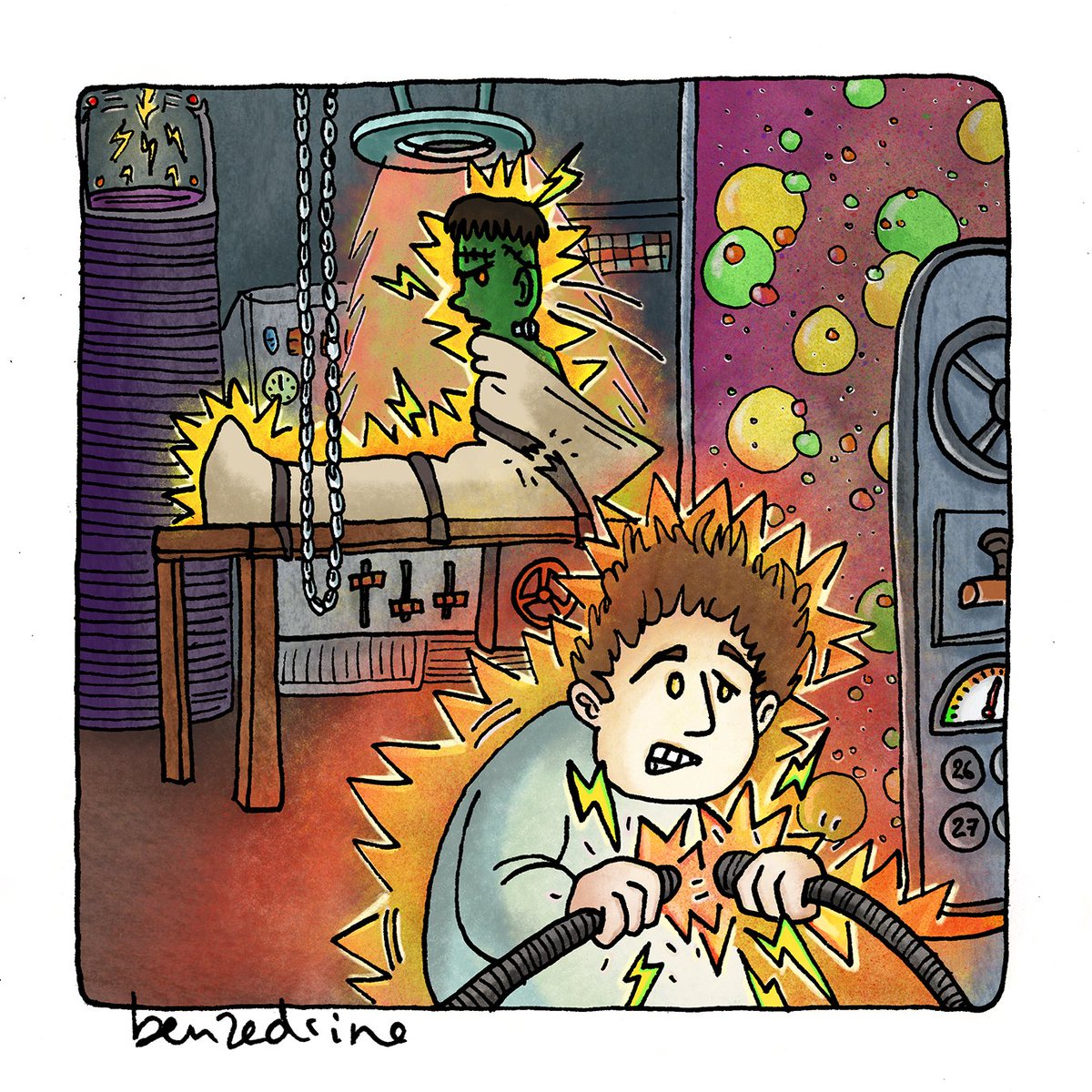 Two in one illustration for #inktober 26 and 27 : connect & spark ✨ illustration inked by hand and colored on procreate 😊 #Halloween #Frankenstein #digitalart #art #ArtistOnTwitter #illustration #inktober2021