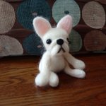 ベージュのフレブルを作る前に、白のフレブルを試作として作りました。 ベージュのフレブルには赤いリボン。白のフレブルには刺繍糸で水色のリボン。刺繍糸は光沢があって綺麗です。 #ハンドメイド #羊毛フェルト #フレブル #フレンチブルドッグ