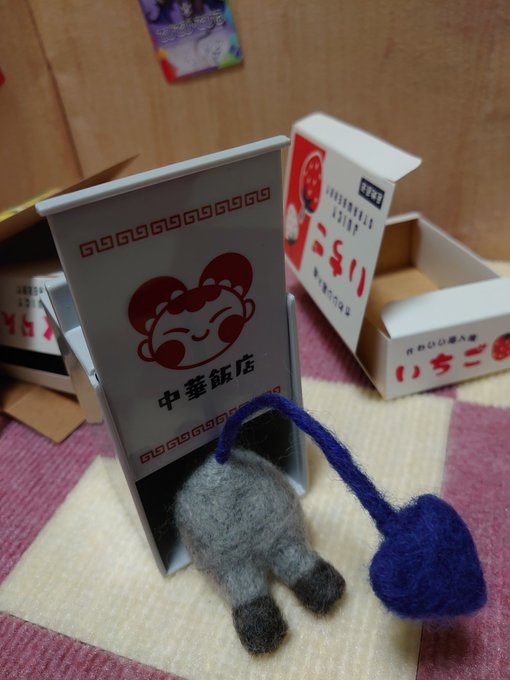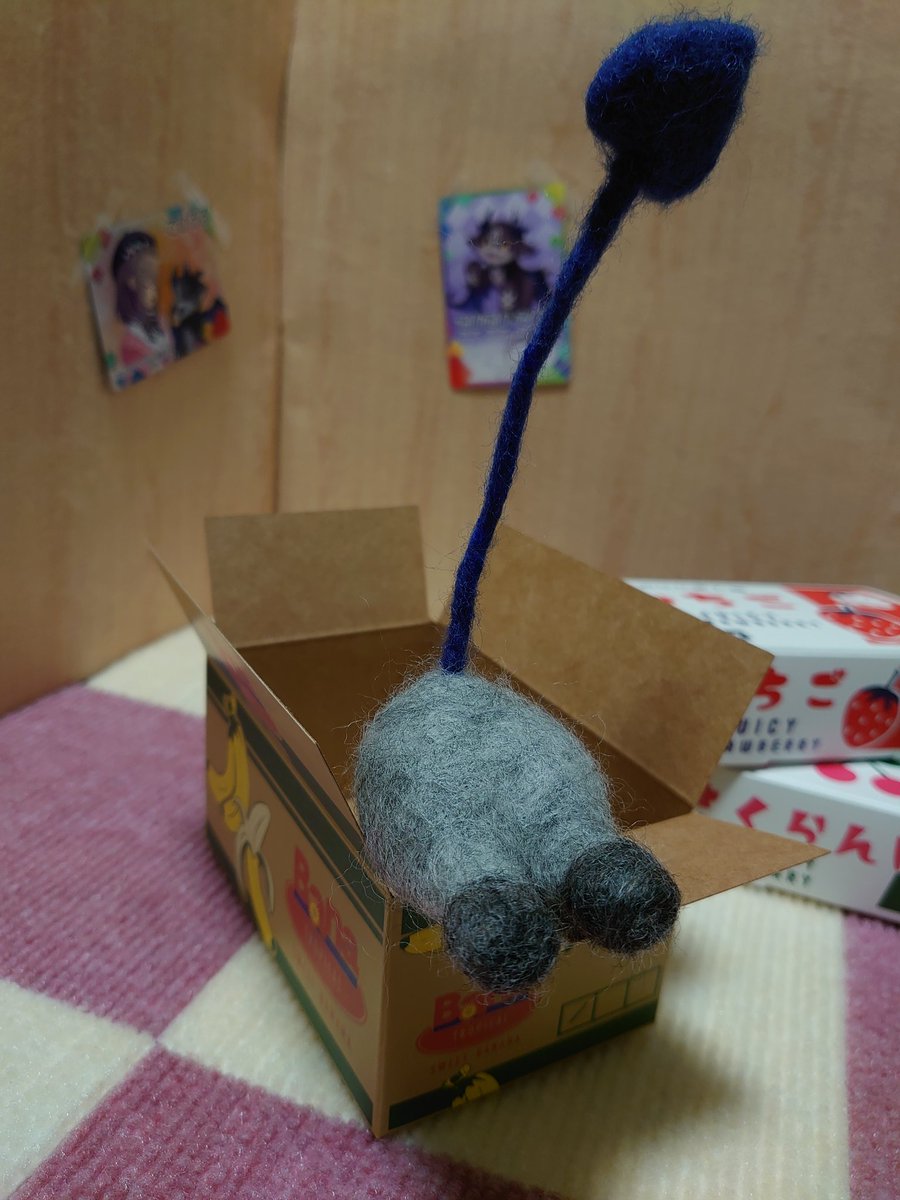 昨日紹介していただいた《でび様のおちりバッジ》 貼ってあるのはカードそのものです! 遠近感がすごく出ちゃって…言われてみると、確かに縮小っぽく見える💦 カード以外は羊毛フェルトや小物、床や壁も百均です♪ #でびでびでびるさま #でびるさまにささげるえ